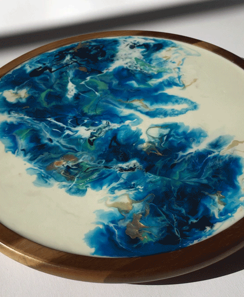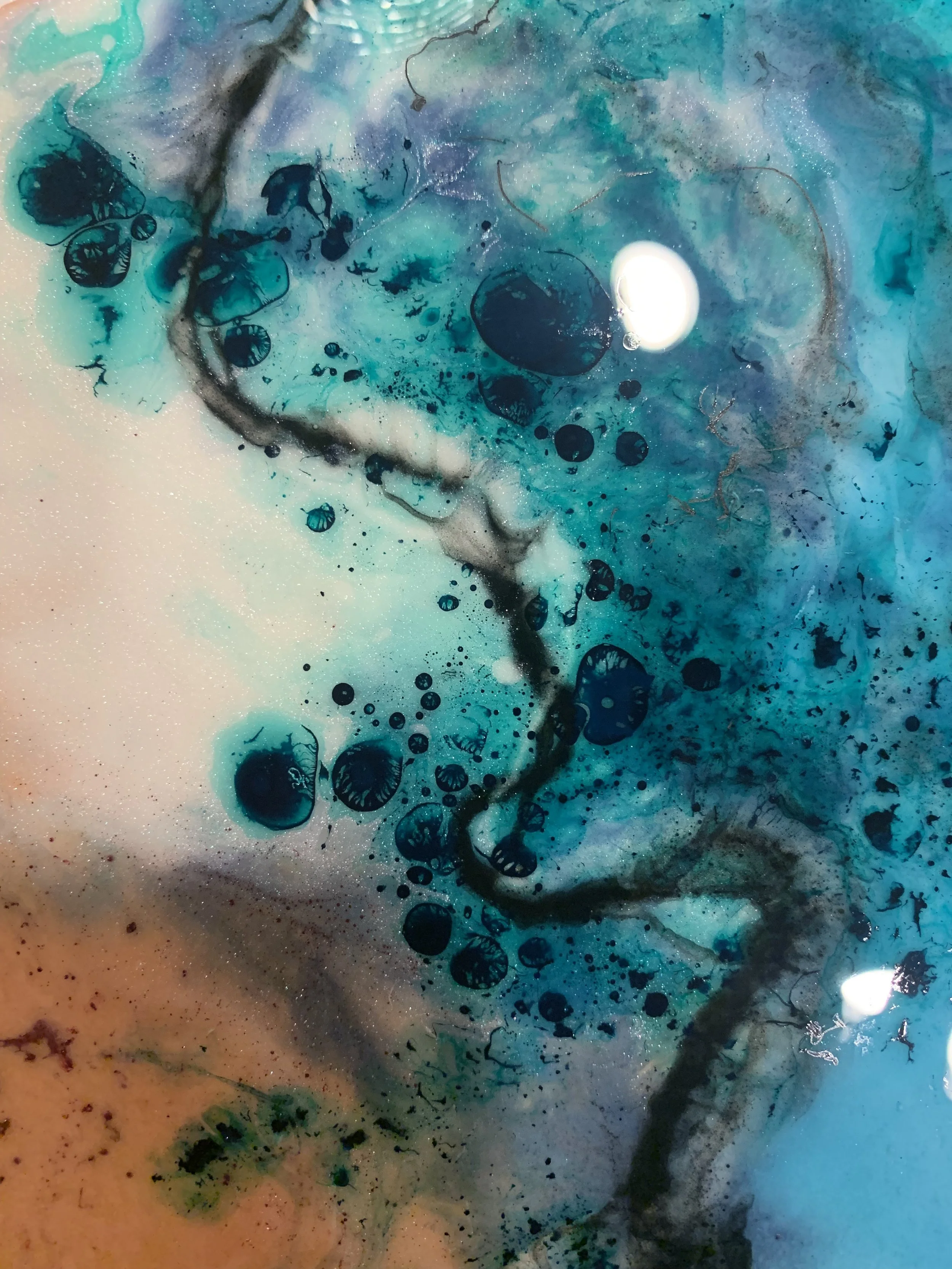 Each piece is an exploration of energy, emotion, and movement. Resin is my current medium, but the heart of my work lives in expression — bold color, layered texture, and the freedom to let each piece become what it needs to be.